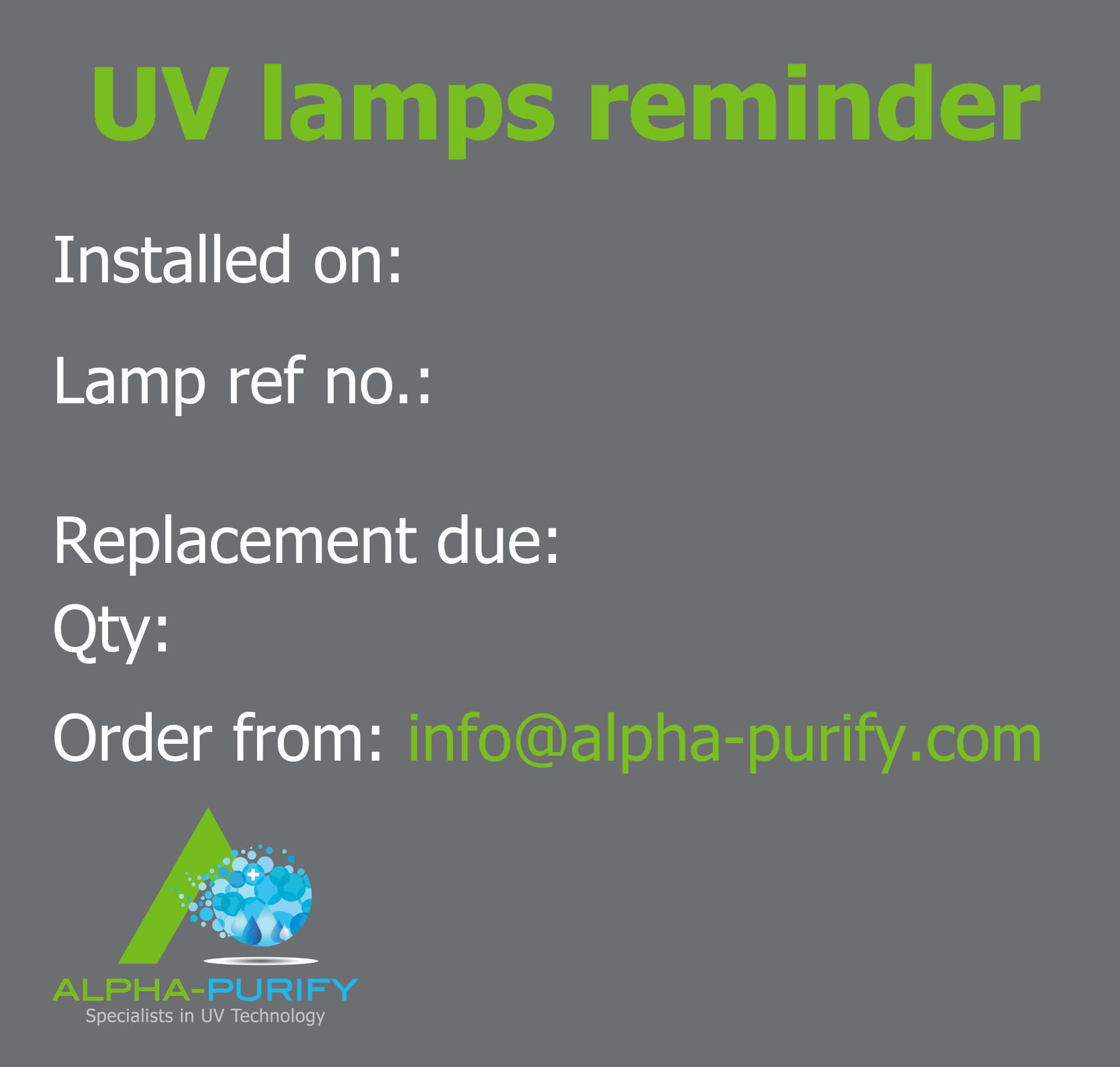 Date: Mark the date you installed your UV lamps to track their lifespan