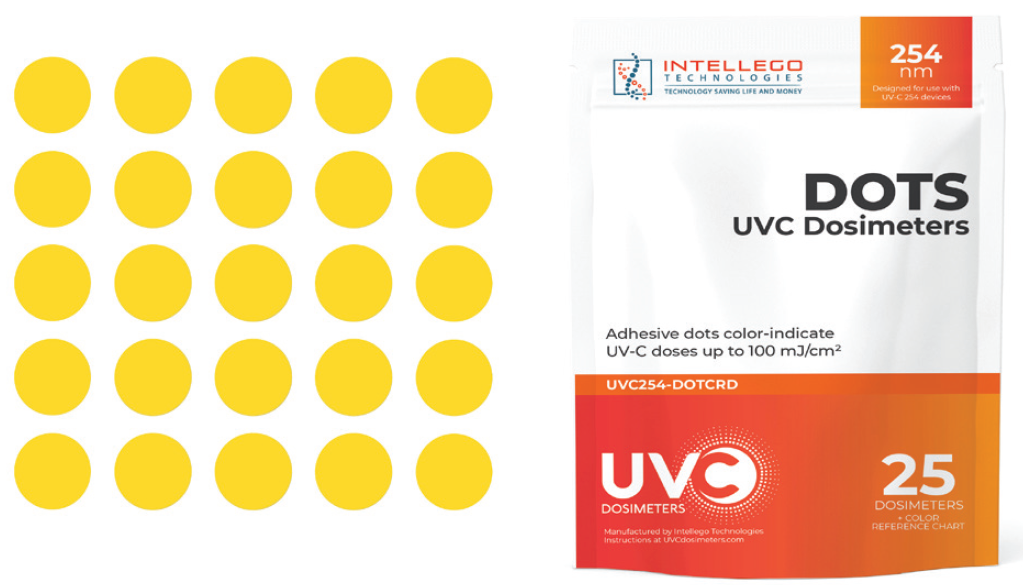 Each dot contains a photochromic ink formulation that reacts to UV-C radiation. As the UV exposure increases, the colour of the dot changes giving a clear, visual indication that a sufficient UV-C dose has been delivered. This makes them particularly useful in environments where it's not practical or cost-effective to install permanent UV monitoring equipment.