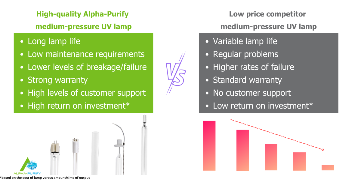 so you continue to buy from us in the future. Using high-quality Alpha-Purify UV lamps makes an important contribution to your long-term revenue and