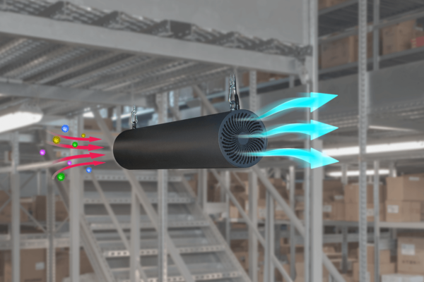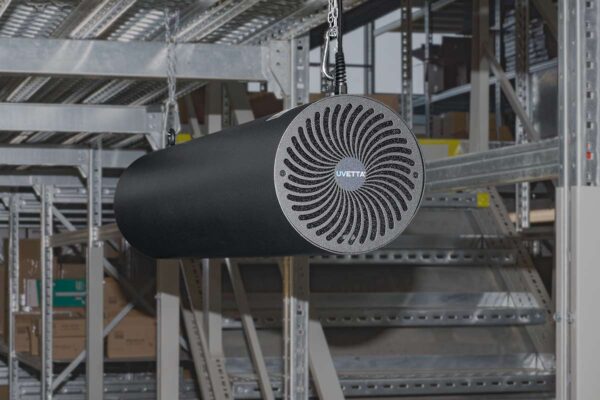 The suspended air UV purification system from UVETTA is a ceiling-mounted unit that hangs from the ceiling and is designed to help disinfect the surrounding air in large spaces such as warehouses, factories, auditoriums and theatres.